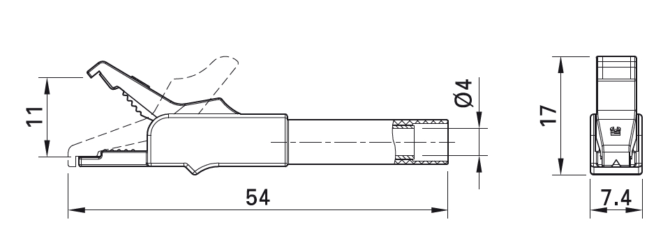 SAGK4-K, Krokodilklämma med Ø 4 mm anslutning.