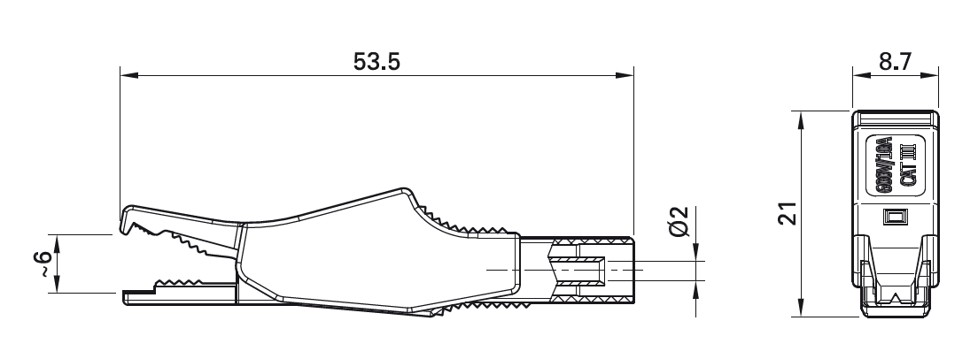 SXKK-200, Krokodilklämma med Ø 2 mm anslutning.