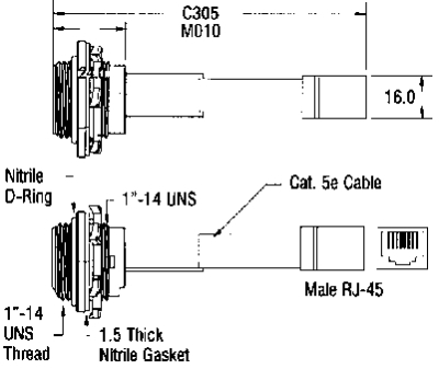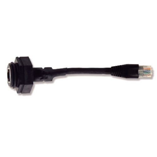 Industri-RJ-45 hona med kabel och standard RJ-45 hane.