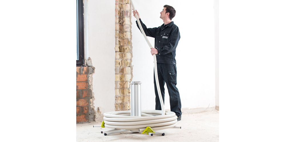 för att spara utrymme och transporteras till nästa byggarbetsplats. Den nya CLOU XL används med särskilt stora, svårhanterliga tomma ledningar,